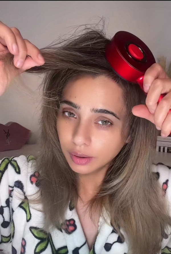 This 3-in-1 Red Light Scalp Comb combines electric vibration massage with 630 nm red-light therapy to stimulate roots, strengthen thinning strands, and slow early greying — all while evenly distributing hair oil for deeper absorption.